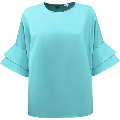 Women's Blue Cosy Solid Aqua Cotton Flare Sleeve Top