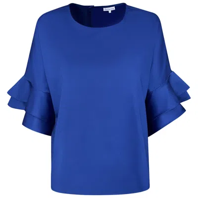 Women's Blue Cosy Solid Azure Cotton Flare Sleeve Top