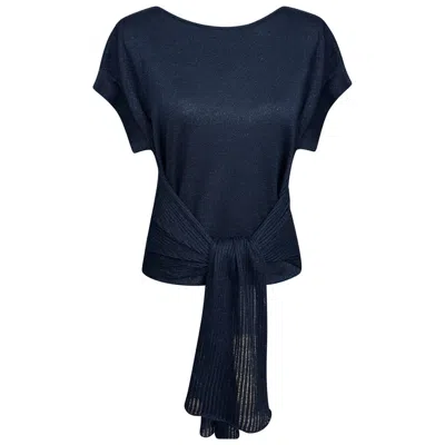 Women's Blue Lolan Navy Solid Linen Flare Sleeve Top