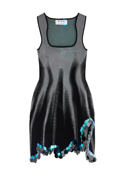 Alyssa Wavy Embellished Knitted Mini Dress In Black