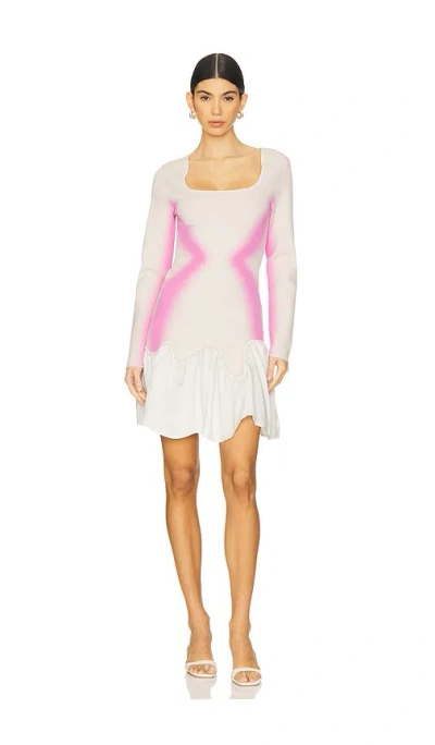 Brooklyn Wavy Asymmetric Knitted Mini Dress In Pink