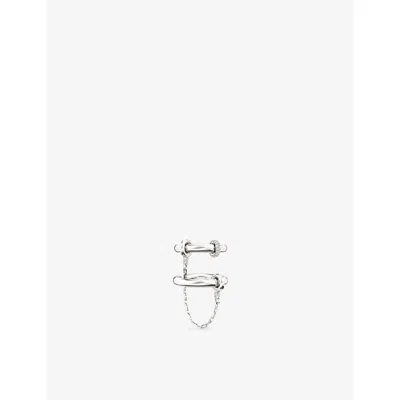 Womens Silver/white Mini Pierced Sterling-silver And Marquise-cut White Topaz Drop Ring