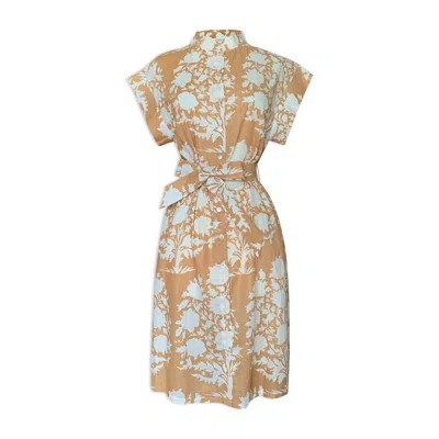 Women's Neutrals Cap Sleeve Classy Shirt Dress Cotton Butterscotch In Orange