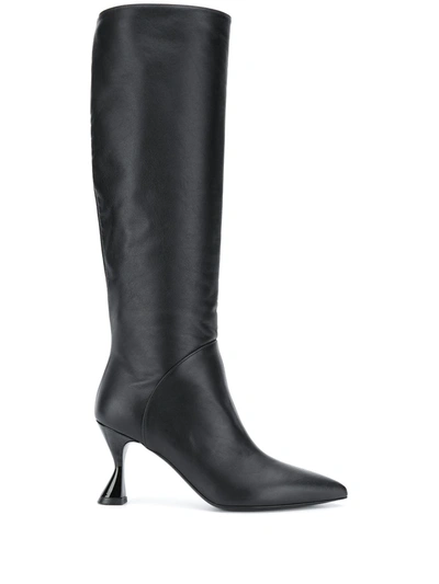 Pointed Knee-length Boots In Black