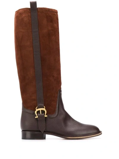 Buckled Chunky Leather Boots In Brown