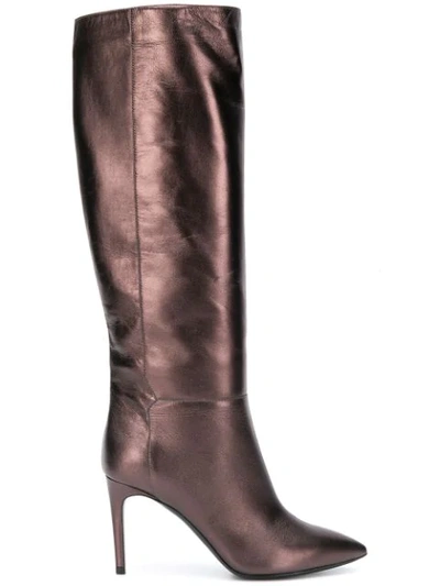 Knee-length Slip On Boots In Brown