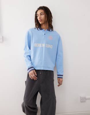Long Sleeve Knitted Logo Polo Shirt In Blue
