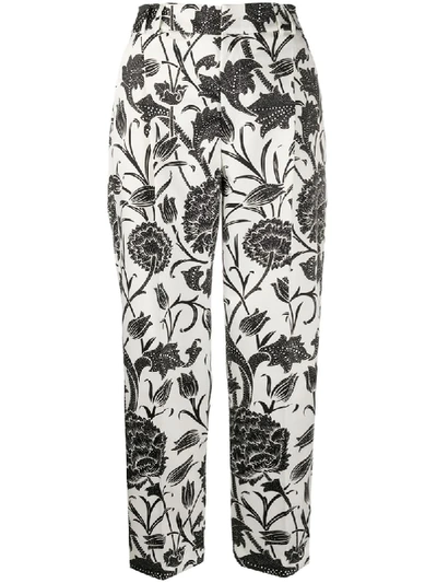 Geometric-print Cropped Trousers In White