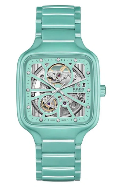 Unisex Swiss Automatic True Square Skeleton Grey Ceramic Bracelet Watch 38mm