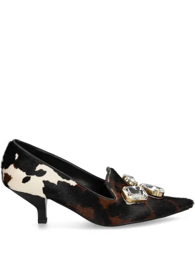 50mm Crystal-embellished Calf Hair Pumps In Brown