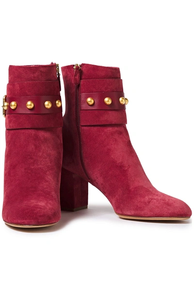 Buckled Studded Suede Ankle Boots In Plum