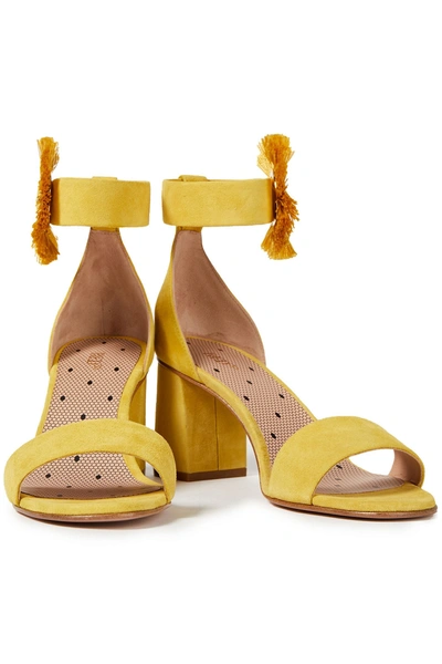 Fringed Suede Sandals In Yellow