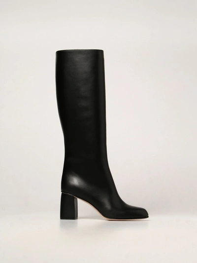 Red (v) Boots In Smooth Leather In Black