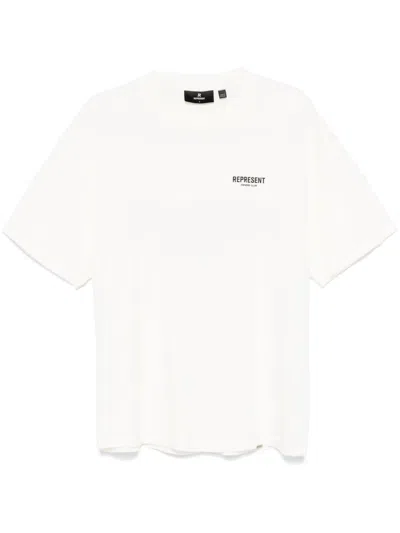 White Crewneck T-shirt With With Front And Back Owners Club Print In Neutral