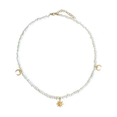 Women's Gold / White Stellar Pearl Necklace - Gold Plated In Metallic