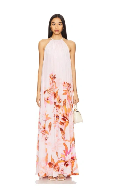 Flared Maxi Dress In 粉红底碎花