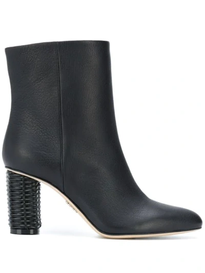 Woven Block Heel Ankle Boots In Black
