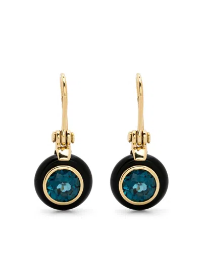 18kt Yellow Gold Frames Onyx And Topaz Earrings In Blue