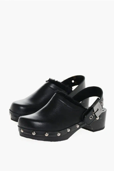 Hdf Leather Pescura Maya Clogs With Studs And Faux Fur Inner In Black
