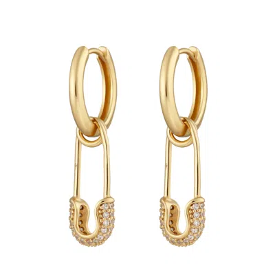 Women's Silver Safety Pin Charm Hoop Earrings In White