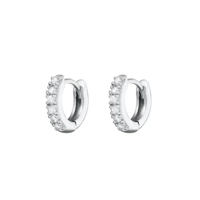 Women's Silver Mini Sparkling Huggie Hoop Earrings