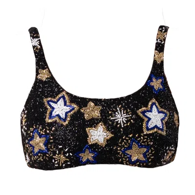 Women's Black / Gold Celeste Hand-beaded Embellished Bikini Top- Black