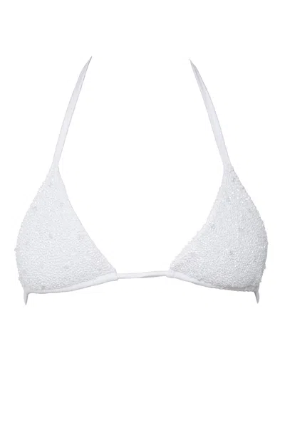 Women's Zenya Hand-beaded Embellished Bikini Top- White