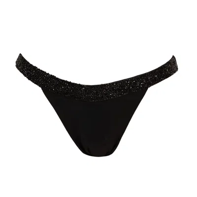 Women's Zenya Hand-beaded Embellished Bikini Bottom- Black