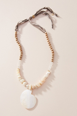 Tess Shell Pendant Necklace In Beige