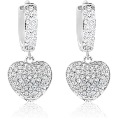 Pavé Dangling Heart Huggie Hoop Earrings In Silver