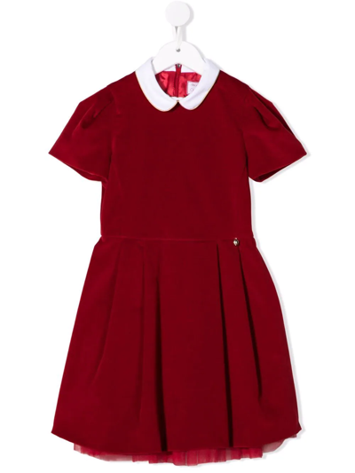Kids' Red Cotton Layered Velvet Dress In Rosso