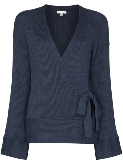 Kylee Ribbed Cotton-blend Wrap Cardigan In Blue