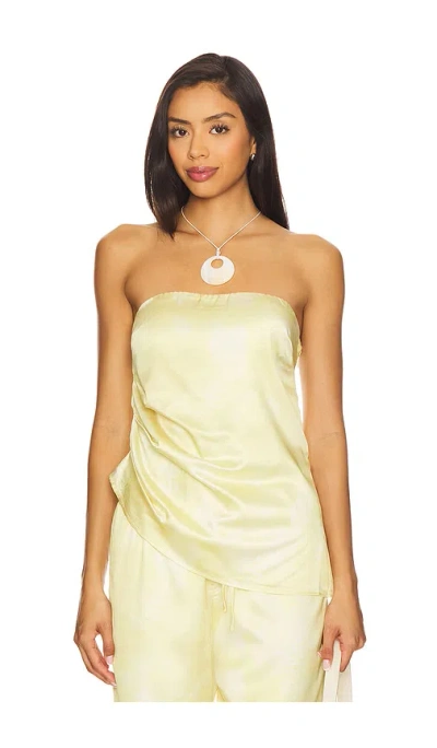 Satin Bandeau Asymmetric Hem Top In Yellow