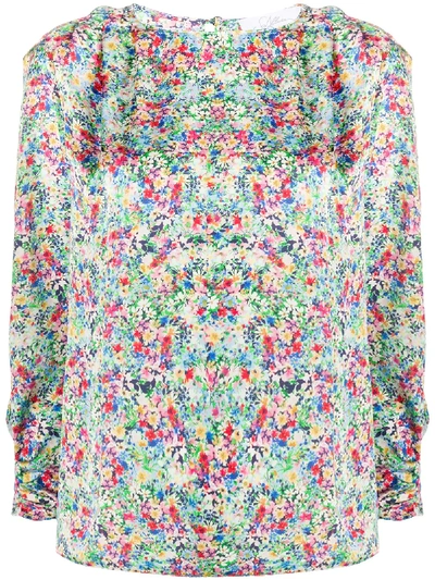 Floral Print Loose-fit Blouse In Blue