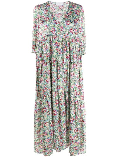 Floral-print Tiered Dress In Blue