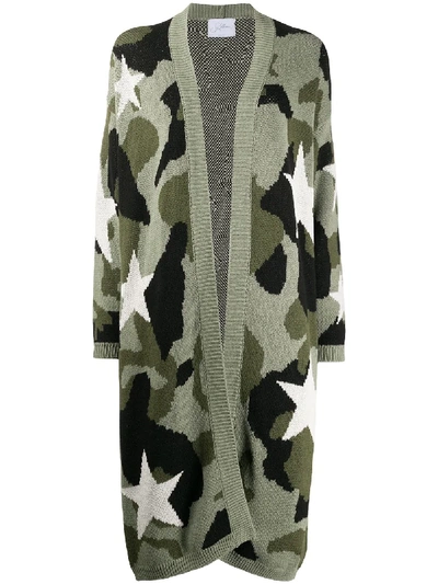 Knitted Camouflage Pattern Cardigan In Green