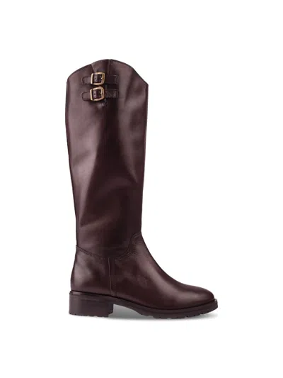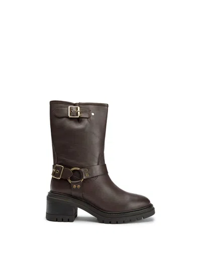 Womens Grunge Biker Boots In Brown