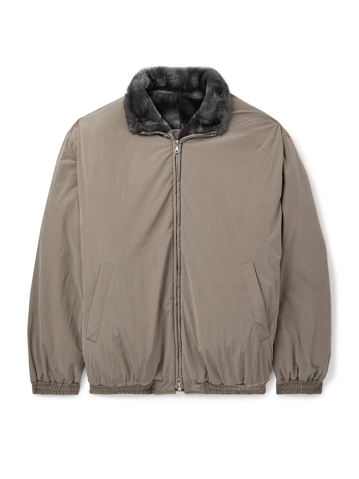 Mouton Reversible Shell And Shearling Jacket In Grey