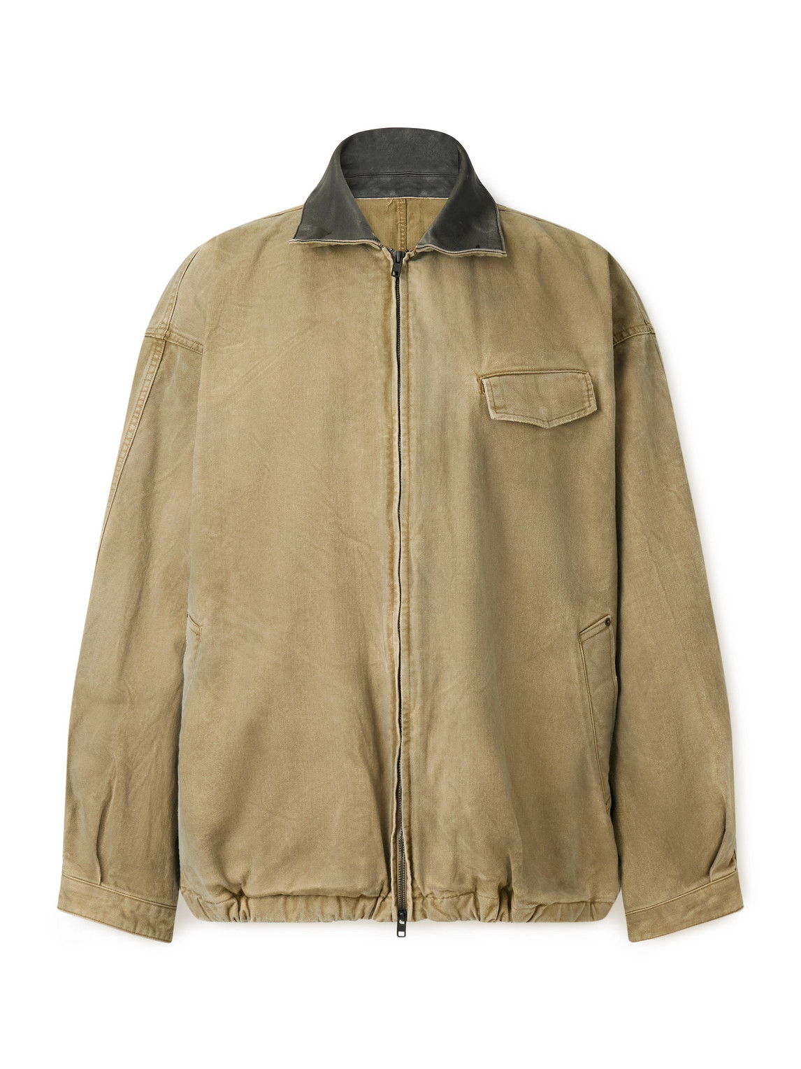 Leather-trimmed Sulfur-dyed Cotton Jacket In Brown