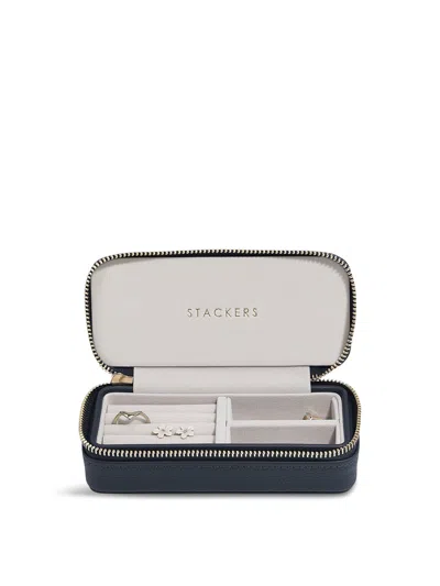 Large Zipped Jewellery Box With Petite In Pebble Navy