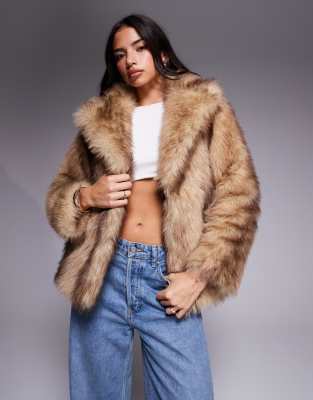Faux Fur Jacket With Oversized Collar In Brown
