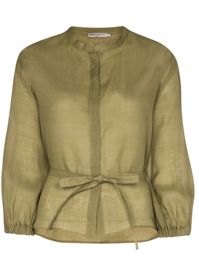 Haddie Button-down Waist Tie Top In Green