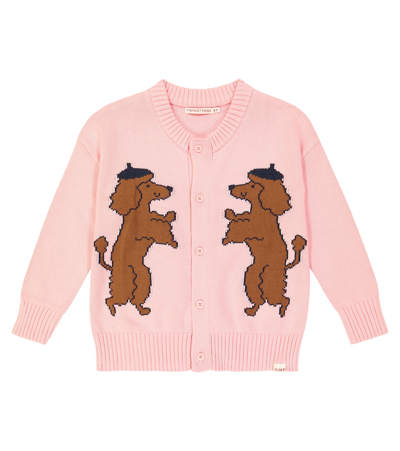 Kids' Poodle Cotton And Wool Cardigan In Pink