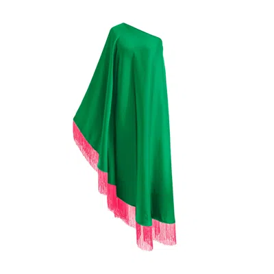 Women's Green / Pink Neon Pink Fringe Off Shoulder Midi Dress
