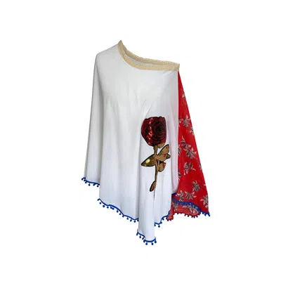Women's Red / White Sequin Rose Off Shoulder Beach Cover Up In Multi