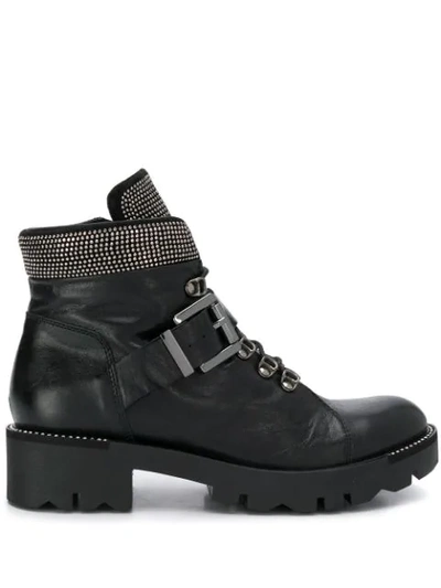 Embellished Biker Boots In Black