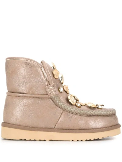 Flat Embellished Boots In Neutrals