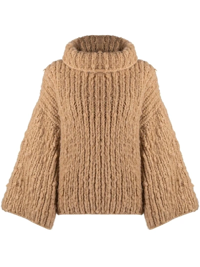 Oversize Roll-neck Jumper In Brown