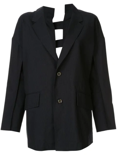 Back Split Pinstripe Blazer In Blue