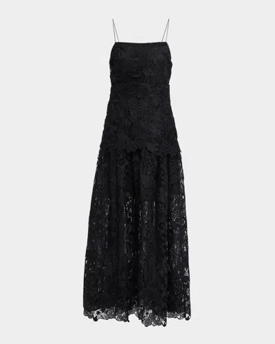 Sleeveless Square-neck Lace Maxi Dress In Black